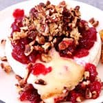 To make ahead: set brie on parchment paper lined baking sheet, top with cranberry sauce and sweet pecan and keep on the counter until ready to bake. If making a day ahead, keep in fridge, then let sit on the counter for 20 minutes before baking. Room temperature Brie will bake faster and the pecans won't burn. If you don't mind cleaning a dish, you can heat up brown sugar with pecans with a teaspoon of butter to make it saucy. Pour over brie after it's baked.